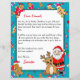 Adicione o nome do seu filho a esta carta personalizada de Papais noeis. Bonita Reindeer e Papai Noel com fundo de doces de Natal e sinal do Polo Norte.