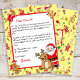 Adicione o nome do seu filho a esta carta personalizada de Papais noeis. Bonita Reindeer e Papai Noel com fundo de doces de Natal e sinal do Polo Norte.