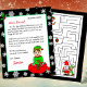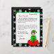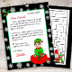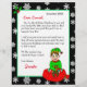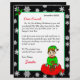 Adicione o nome do seu filho a esta carta personalizada de Papais noeis. Elfo bonito sentado num saco de brinquedos. Coloração de página no verso.