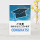 Um cartão de graduação de parabéns em japonês. A placa diz "ご 卒 お め で と う ご ざ い 業 ま す 。, o que significa "Parabéns na sua graduação".
