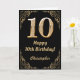 Cartão 10º aniversário - Quadro negro e Dourado com brilh