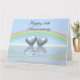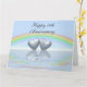 Dois corações de estanho ou alumínio flutuando na água sob um arco-íris. O texto personalizável diz "Feliz 10º Aniversário" com um dentro verso.