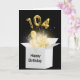 Balões Dourados e feixes de luz cintilantes brilham em uma caixa branca sobre fundo preto no aniversário de 104 anos