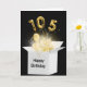 Balões Dourados e feixes de luz cintilantes brilham em uma caixa branca sobre fundo preto no aniversário de 105 anos
