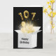 Balões Dourados e feixes de luz cintilantes brilham em uma caixa branca sobre fundo preto no aniversário de 107 anos