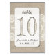 Este cartão de número da mesa de casamento rústica apresenta um fundo de arromba e renda com a habilidade de personalizar o cartão com seus nomes e data de casamento. Coordenadamente perfeitamente com a nossa coleção de casamentos de arromba e rendas.