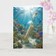 Happy 10th Anniversary message in a wine bottle resting on the ocean floor, surrounded by tropical fish and illuminated by sunlight.