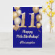 Cartão 11 Birthday Marinho Azul e Dourado Balões Confetti