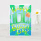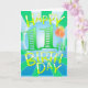 11o cartão de aniversário feliz. Cor: Na maior parte verdes e azul. Interior do cumprimento: O feliz aniversario, maio este dia seja sempre especial a recordar.