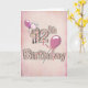 Cartão 12 Aniversário com menina segurando balões rosa