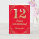Cartão 12 Birthday Red and Dourado Glitter Frame