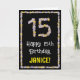 A frente desta divertida e inspirada na natureza, design de cartão de saudação temático de aniversário tem a mensagem "Feliz 15 de Aniversário", e um nome de destinatário editável. O grande número "15" e a fronteira na frente são ambos constituídos por ícones de flores. O dentro apresenta uma mensagem de saudação de aniversário personalizada, ou talvez possa ser apagado e deixado vazio se uma mensagem for escrita manualmente. Um cartão floral e personalizado de saudação de aniversário como este pode ser uma maneira divertida de entregar cartões de aniversários a alguém que comemora seu décimo quinto aniversário. [~Z0000648]