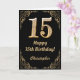 15 Aniversário negro e Dourado quadro brilhante. Para mais personalização, clique no botão "Personalizar" e use nossa ferramenta de design para modificar este modelo.