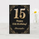 Cartão 15 Birthday Black and Dourado Glitter Frame