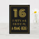 A frente deste estilo 1920/1930s inspirou e o vintage parece design de cartão de saudação com o tema de aniversário apresenta um grande estilo Art Deco inspirado número "16", a mensagem "FELIZ 16.º ANIVERSÁRIO", um nome personalizado e um padrão de borda composto por linhas. O dentro apresenta uma mensagem de saudação de aniversário editável, ou talvez pudesse ser apagado e deixado o vazio se uma mensagem fosse escrita manualmente. Um cartão de aniversário personalizável como este pode ser uma maneira divertida de reconhecer o décimo sexto aniversário de alguém. [~Z0000394]