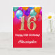16º Aniversário Cartão de Aniversário Vermelho e Dourado Balões Coloridos. Para mais personalização, clique no botão "Personalizar" e use nossa ferramenta de design para modificar este modelo.