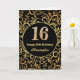 Cartão 16.º Aniversário Padrão Floral Dourado e Preto