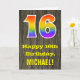 Cartão 16.º aniversário: Rustic Faux Wood Look, Rainbow "