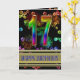 Uma explosão de cor com este incrível cartão de aniversário. Fogos de artifício e bolhas em cores do arco-íris, e um fundo de ouro fino para a saudação.