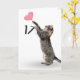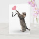 Cinza por gato com balão de coração cor-de-rosa para o 17.º aniversário sobre fundo branco. A cor de fundo pode ser alterada. A idade é editável.