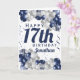 Um maravilhoso marinho e balão prateado feliz cartão de 17 anos. Esta design fabulosa é a maneira perfeita de desejar a alguém um feliz 17 anos (ou qualquer idade!) Personalizar com nosso próprio nome e mensagem personalizados. Tipografia azul e belos balões azuis e prateados marinhos.