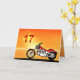 Uma moto semelhante a um Harley parado ao lado do mar com um glorioso pôr do sol laranja. Um cartão de excelente para qualquer pessoa que goste de bicicleta e motocicletas. Veja toda a gama de cartas para idades e relacionamentos na minha loja. Todos os direitos de autor da trabalho de arte Norma Cornes
