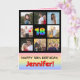 A frente deste alegre e divertido design de cartões de saudação com tema de aniversário apresenta o número "18", tendo um espectro de arco-íris vibrante inspirado em um padrão de gradação, junto com a mensagem "FELIZ 18 ANOS DE ANIVERSÁRIO" e um nome de destinatário personalizado. As fotos que rodeiam o número com padrão arco-íris na frente podem ser personalizadas, talvez com fotos do receptor, da família e dos amigos do receptor, ou do(s) remetente(s) do cartão. Há também um espectro multicolorido do arco-íris inspirado no padrão de gradação de fundo por trás da mensagem personalizada. O dentro tem uma mensagem de saudação de aniversário editável, ou talvez possa ser apagado e deixado vazio se uma mensagem for escrita manualmente. Um cartão de cumprimentos de aniversário otimizado e personalizável como este pode ser usado para celebrar o décimo oitavo aniversário de alguém. (Fotografia © Storytree Studios, Stanford, CA.) [~Z0000662]