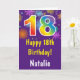 18º Aniversário Cartão Roxo Colorido do Arco-Íris Fireworks com nome personalizado. Para mais personalização, clique no botão "Personalizar" e use nossa ferramenta de design para modificar este modelo.