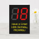 A frente deste design de cartão de saudação com o tema de aniversário divertido apresenta um grande número "18" com uma aparência de estilo de exibição digital de sete segmentos vermelhos, juntamente com a mensagem "Tenha um Excelente 18º aniversário" e um nome personalizado, em um fundo de cor preta. O dentro apresenta uma mensagem de saudação de aniversário personalizada, ou talvez possa ser apagado e deixado vazio se uma mensagem for escrita manualmente. Um cartão de aniversário personalizável como este pode ser uma maneira divertida de reconhecer o décimo oitavo aniversário de alguém. [~Z0000386]