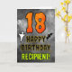 A frente deste design de cartões de aniversário temático e assustador do Hallowe'en apresenta um grande número "18". Também apresenta a mensagem "FELIZ ANIVERSÁRIO" e um nome editável. Há também representações de um morcego e de um fantasma na frente. O dentro apresenta uma mensagem de saudação de aniversário personalizada, ou talvez possa ser apagado e deixado vazio se uma mensagem for escrita manualmente. Um cartão de aniversário personalizável como este pode ser uma maneira divertida de enviar uma mensagem em comemoração do décimo oitavo aniversário de alguém que também cai no dia 31 de outubro (Halloween). [~Z0000547]