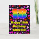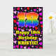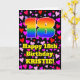 The front of this cheerful and colorful birthday greeting card design features a large number “18” with a rainbow spectrum gradient inspired pattern, along with the message “Happy 18th Birthday,”, and a customizable name. The background of the front features a pattern of heart shapes with colors like pink, purple, and red. The inside has a custom birthday greeting message, or could perhaps be cleared and left blank if a message is to be written by hand instead. A fun, personalized birthday greeting card like this might be sent to celebrate somebody’s eighteenth birthday. [~Z0000551]