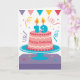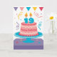DESIGN PERSONALIZÁVEL! Este é o cartão de aniversário perfeito...ou mude a idade para o fato! O cartão apresenta um bolo deluxe com a menção "Parabéns". A idade do receptor é representada como velas acesas no bolo. Uma bandeira, um confete e um galhardetes adicionam um ar festivo. O design está limpo, com uma paleta agradável. Sinta-se livre para mudar na saudação de dentro.