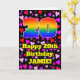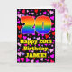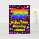 The front of this happy and joyful birthday themed greeting card design features a large number “20” with a rainbow spectrum gradient inspired pattern, along with the message “Happy 20th Birthday,”, and a custom name. The background of the front features a pattern of pink, purple, and red heart shapes. The inside has a custom birthday greeting message, or could perhaps be cleared and left blank if a message is to be written by hand instead. A fun, customized birthday greeting card like this might be a fun way to deliver birthday greetings to somebody who is celebrating their twentieth birthday. [~Z0000551]