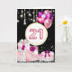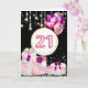 Celebre seu aniversário de 21 anos com este design moderno e engraçado, com luzes de cordas verticais suspensas, abaixo das quais há um círculo branco redondo coberto de ouro falso e abaixo daquele borrão brilhante e presentes bonito de cetim embrulhados com arcos brilhantes. Um punhado de balões aparece no canto superior direito e o numeral vinte e um, ao estilo de balão, em negrito, aparece no meio, em rosa, contra um fundo branco estrelado que o torna pop. A mensagem dentro pode ser alterada para atender às suas necessidades pessoais. Ideal para mulheres.