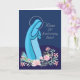 Uma imagem simples de Maria em azul, é vista ajoelhada em uma cama de rosas e outras flores cor-de-rosa. Deseje à Irmã um feliz jubileu prateado enquanto celebra seu 25 aniversário da profissão religiosa.