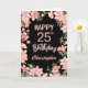 Cartão 25 Aniversário Pink Peach Aquarela Floral Preto