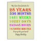 28º cartão de aniversário contando os anos, dias, meses, horas e minutos. Um cartão para dar pausa para pensar! Foram tidos em conta anos saltos!