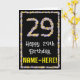 A frente deste design de cartão de saudação floral, inspirado no jardim, tem a mensagem "Feliz 29º Aniversário," junto com um nome de destinatário personalizável. O grande número "29" mais a fronteira na frente consiste em ícones de flor. O dentro apresenta uma mensagem de saudação de aniversário personalizável, ou talvez possa ser apagado e deixado o vazio se uma mensagem for escrita manualmente. Um cartão de cumprimentos florais, divertido e personalizado, como este, pode ser uma maneira divertida de entregar alguns desejos de aniversário a alguém que comemora seu vigésimo nono aniversário. [~Z0000648]