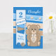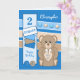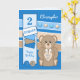 Personalize este Cartão de Aniversário para um garotinho. 2 anos Projetado em azul e marrom, com um ursinho bonito. Adicione um nome e idade Feliz Aniversário Divirta-se Desejando um dia especial