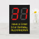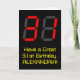 A frente deste design de cartão de saudação temático de aniversário nerdy e bobo de grande número "31" com uma aparência de estilo de exibição digital de sete segmentos vermelhos, juntamente com a mensagem "Tenha um Excelente 31º aniversário" e um nome personalizável, em um fundo preto colorido. O dentro apresenta uma mensagem de saudação de aniversário editável, ou talvez pudesse ser apagado e deixado o vazio se uma mensagem fosse escrita manualmente. Um cartão de aniversário personalizável como este pode ser uma maneira divertida de enviar desejos de aniversário a alguém que comemora seus trinta anos de primeiro aniversário. [~Z0000386]