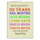 32º cartão de aniversário contando os anos, dias, meses, horas e minutos. Um cartão para dar pausa para pensar! Foram tidos em conta anos saltos!