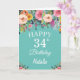 34.º Aniversário do Watercolor Floral Floral Flowers Cartão Teal com nome e idade personalizados. Para mais personalização, clique no botão "Personalizar" e use nossa ferramenta de design para modificar este modelo.