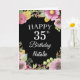 35.º Aniversário das Flores Florais de Aquarelas - Cartão Preto com nome e idade personalizados. Para mais personalização, clique no botão "Personalizar" e use nossa ferramenta de design para modificar este modelo.