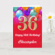 36º Aniversário Cartão de Aniversário Vermelho e Dourado Balões Coloridos. Para mais personalização, clique no botão "Personalizar" e use nossa ferramenta de design para modificar este modelo.