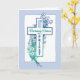 Aniversário Deseja que um Padre ganhe vida com este cartão azul com cruz fluindo com flores. Totalmente personalizável.