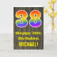 A frente deste design de saudação de aniversário colorido, mas rústico, apresenta um grande número "38" com um padrão inspirado no gradiente do espectro arco-íris. Também apresenta a mensagem "Feliz 38.º Aniversário", e um nome de destinatário editável. A frente apresenta um plano de fundo que descreve um padrão de estilo rústico de grãos de madeira falsa. O dentro apresenta uma mensagem de saudação de aniversário personalizada, ou talvez possa ser apagado e deixado o vazio se uma mensagem for escrita manualmente. Um cartão de aniversário personalizável como este pode ser uma maneira divertida de celebrar o trinta e oitavo aniversário de alguém. [~Z0000419]