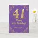 Cartão 41rua Aniversário Roxo e Dourado Quadro de Literat