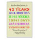 42º cartão de aniversário contando os anos, dias, meses, horas e minutos. Um cartão para dar pausa para pensar! Foram tidos em conta anos saltos!