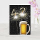 Festas com um confete de ouro e uma caneca de cerveja no 42º aniversário. A cor preta do plano de fundo pode ser alterada. O texto dentro é editável.