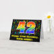 Este design de carta de saudação divertida, colorida e empolgante do aniversário apresenta um grande número "42" com um padrão inspirado no gradiente do espectro arco-íris, juntamente com a mensagem "Feliz 42º Aniversário", e um nome de destinatário personalizado. A frente também apresenta um padrão de várias notas e símbolos de música com várias cores e tamanhos. O dentro apresenta uma mensagem de saudação de aniversário personalizada, ou talvez possa ser apagado e deixado o vazio se uma mensagem for escrita manualmente. Um cartão de saudação de aniversário personalizado como este poderia ser usado para reconhecer o aniversário de um músico, um compositor de música, um cantor ou outro de quarenta e segundos. [~Z0000426]